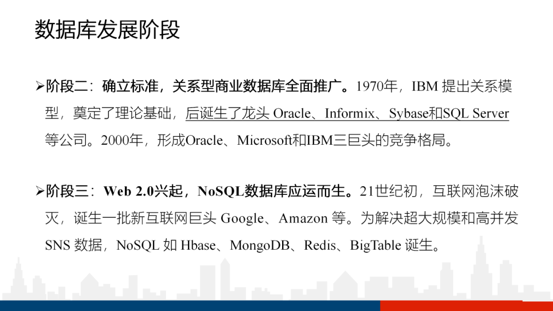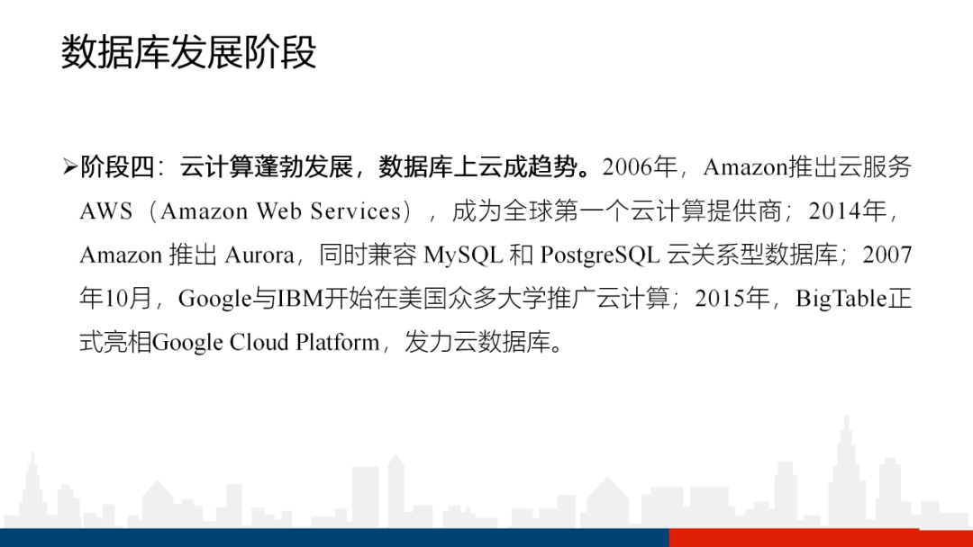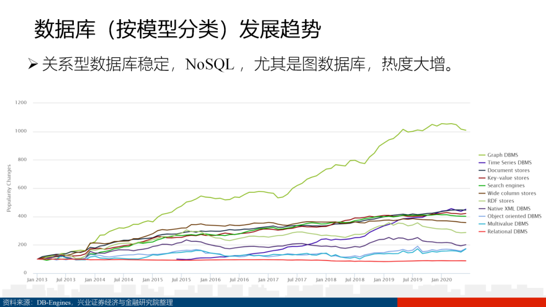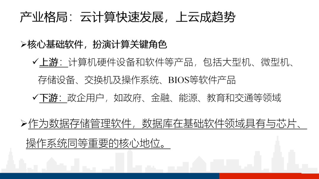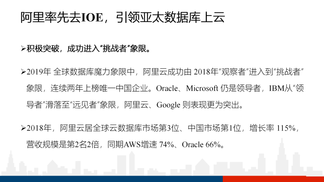 根据Gartner数据,2018年全球数据库市场总量为461亿美元,其中云数据库市场占据104亿美元。2017-2018年整体行业增速达18.4%,高于过去的年复合增长率,其中68%的增长来自于云数据库。Amazon和Microsoft贡献了整个市场75%增长,且几乎都来自于云化增长。越来越多用户正在将系统部署在云中,云带来了数据库产业的创新,云也为传统数据库厂商带来了新的盈利模式。