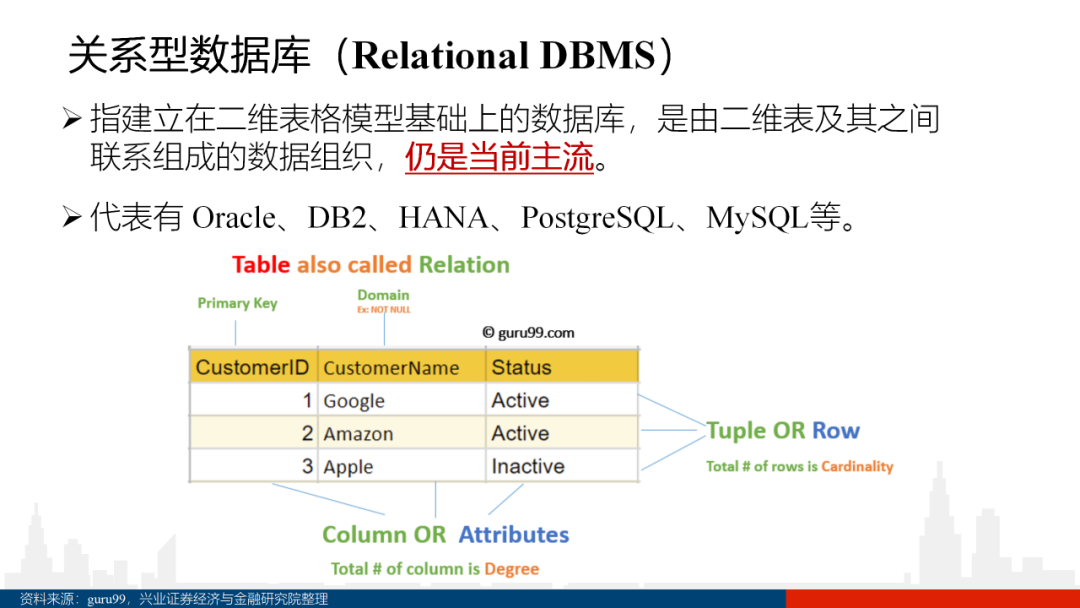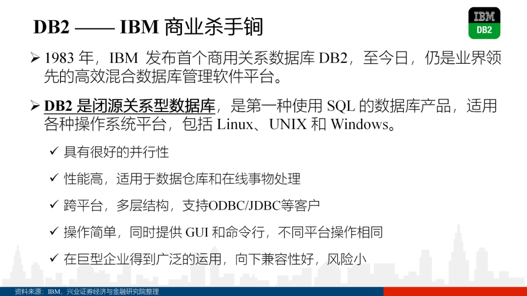 东方国信(300166.SZ):2018年发布了自主研发的CirroData分布式数据库。CirroData在面向大数据应用领域的基础上,结合弹性资源管理、行列混合存储技术、大规模并行化任务规划等技术,延伸出4个产品线。CirroData已经在全国28个省份落地,拥有上百个大型客户,覆盖通信、金融、政府、公共安全、智慧城市、能源、互联网多个行业。