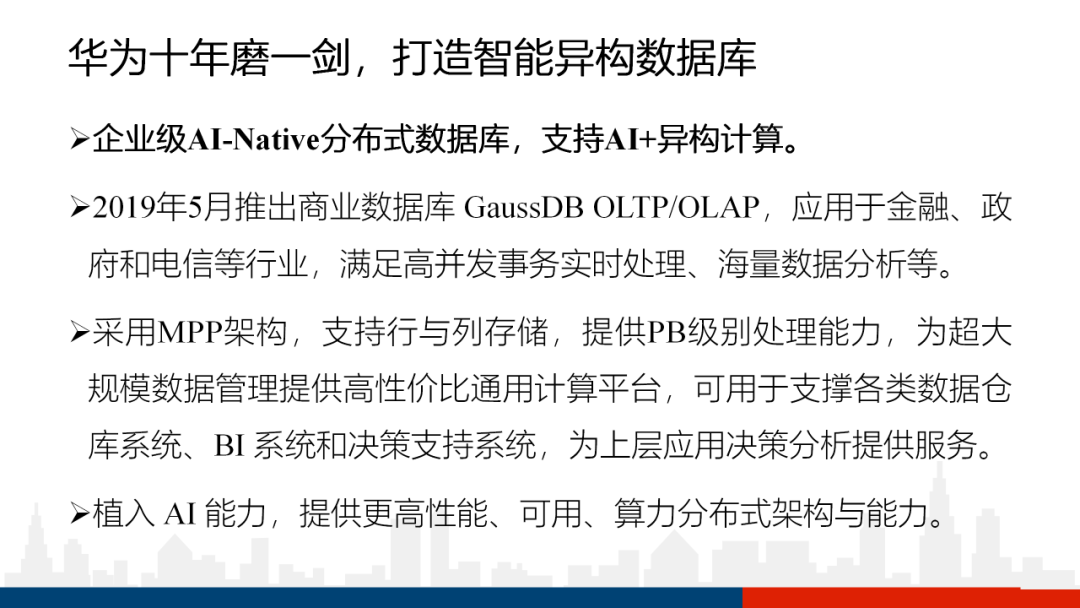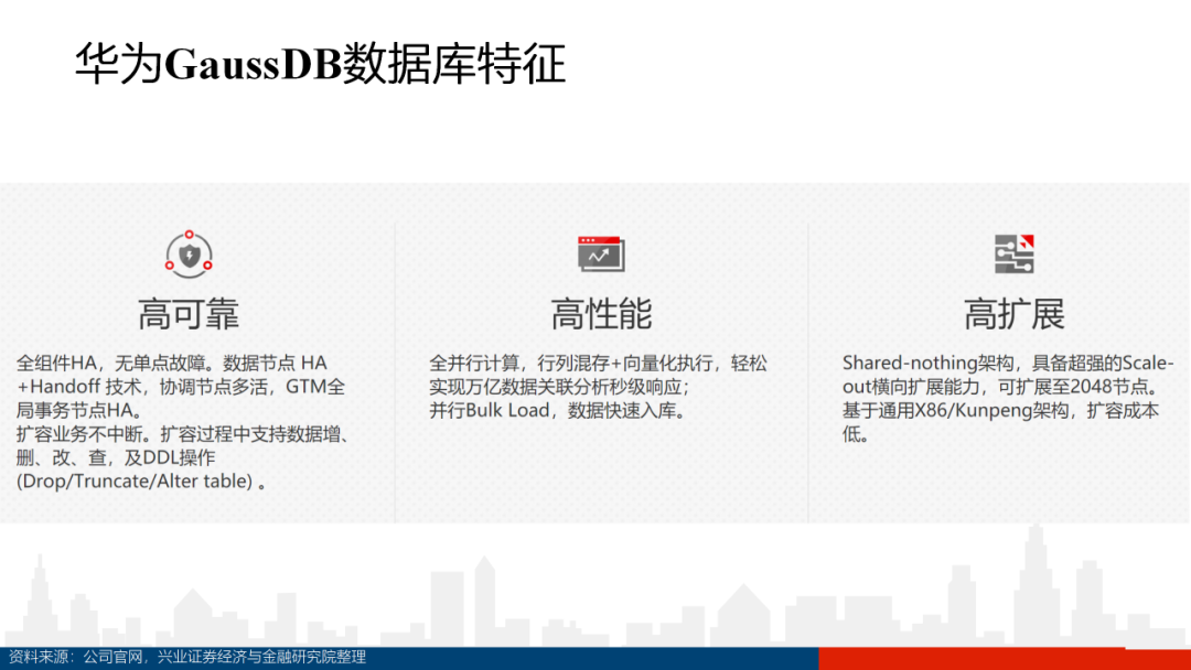 高斯(GaussDB)是华为2019年5月推出的数据库,2020年7月1日正式宣布开源,开源版本命名为OpenGauss。高斯数据库的源码来自于PostgreSQL,是开源数据库中对事务、存储过程支持最好的产品,适应用于商业政府等场景。GaussDB融合了PostgreSQL和华为对数据库的理解,形成了金融、政府、能源和电信等行业运营成熟版本,可以满足高并发事务实时处理、海量数据高效分析等需求。同时,GaussDB 数据库针对ARM架构进行了优化,实现了异构计算。