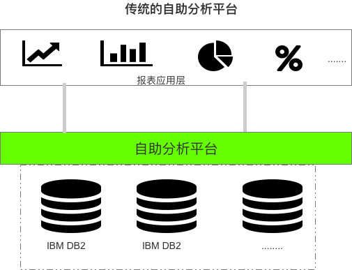 但随着自助分析平台使用率逐步提高、数据量日益增大,尤其多人同时对数据量较大的业务主题进行查询分析时,平台出现较为严重的等待现象,影响可用性。此外,单节点DB2数据库的数据处理效率低下,还降低了科技人员开发效率,直接影响数据服务能力。