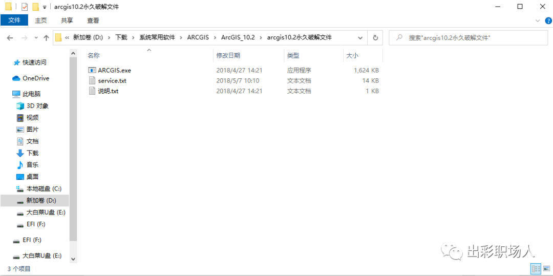 需要arcgis 软件完整安装包以及永久破解文件的gis朋友,可以关注小编的微信公众号或者百家号,私信回复:“arcgis10.2”即可获得百度网盘链接地址获取完整的安装包及破解文件,只需要破解包文件的单独下载文件包中的“arcgis10.2永久破解文件”即可。