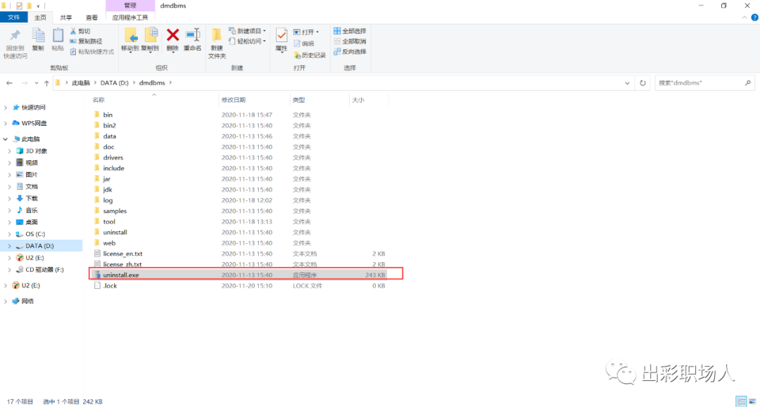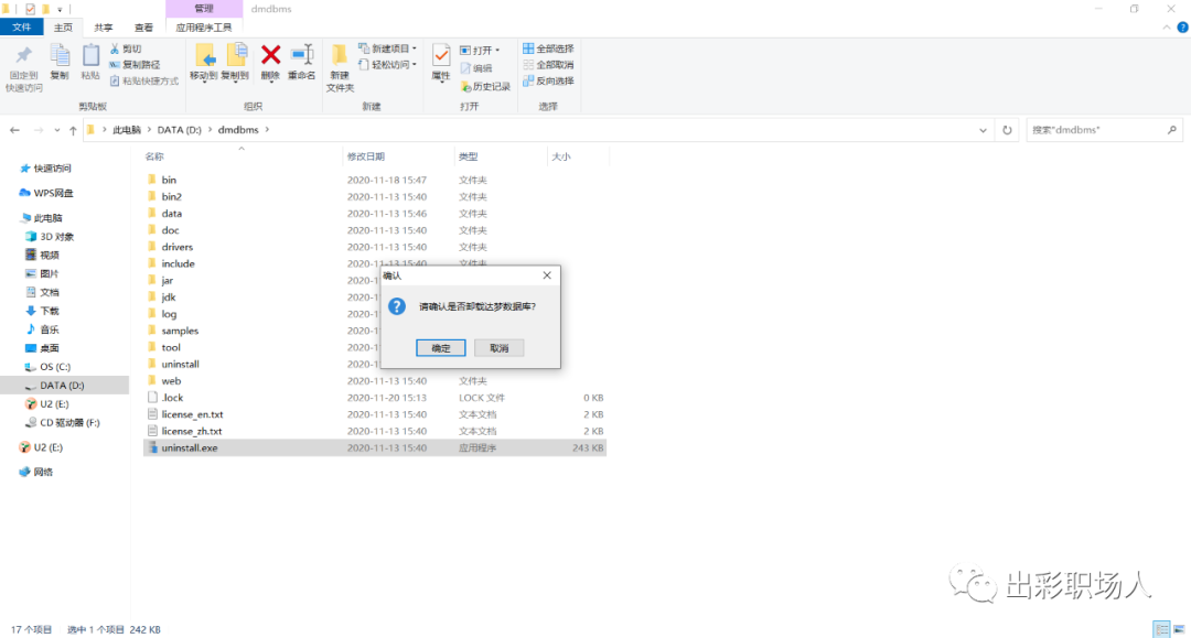 当然,我们也可以在 DM 安装目录下,找到卸载程序 uninstall.exe来双击执行卸载。