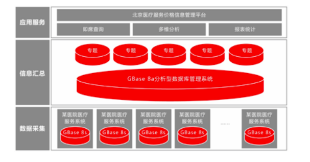 北京医疗服务价格信息管理平台的数据来自南大通用GBase 8a数据库搭建的医疗服务信息管理平台,该平台将各级医院的数据抽取加载至南大通用分析型数据库GBase 8a中,在此保存和处理北京市各级医院的综合医疗服务数据,包括一般医疗服务、一般治疗操作、护理和其他服务等各项目信息,实现对全市医疗信息的全面深入分析,提供多维分析、即席查询和报表统计管理等功能,实现千万级条目的快速查询响应。