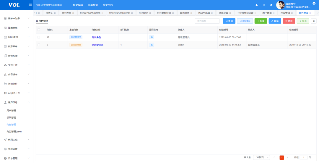 4、用户信息:用户管理、权限管理、角色管理、角色管理(Tree)