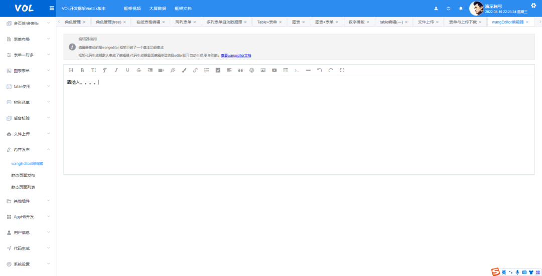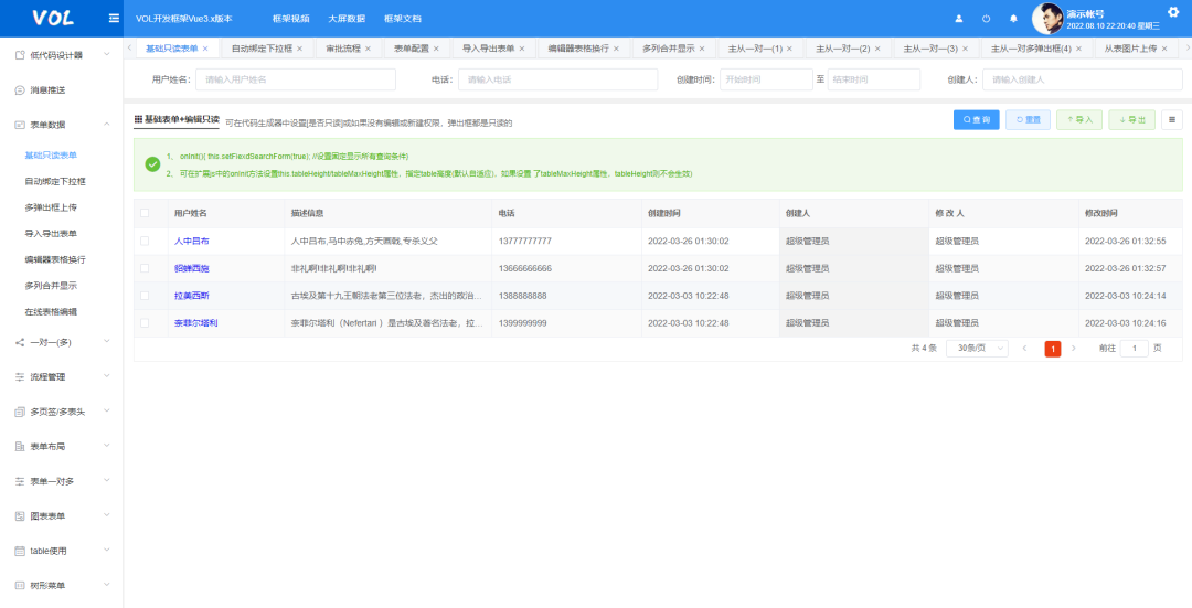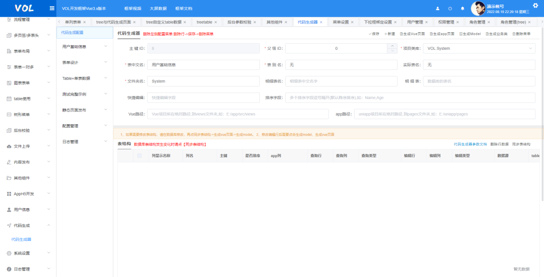5、代码生成器:用户基础信息、表单设计、测试完整示例、配置管理、日志管理