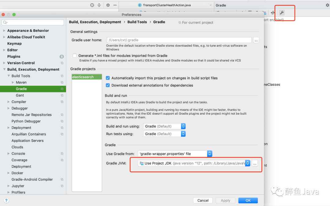 2、本身如果安装了gradle,确保安装的gradle不要对项目生效,尽量使用代码中elasticsearch/gradle