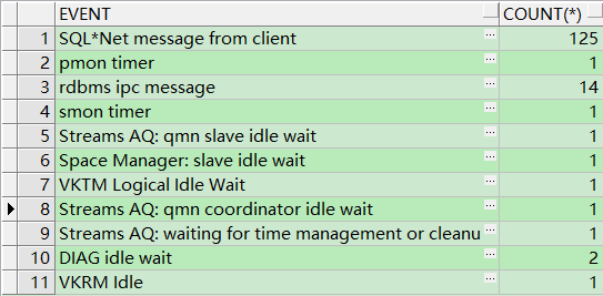 select event,count(*) from v$session_wait group by event;