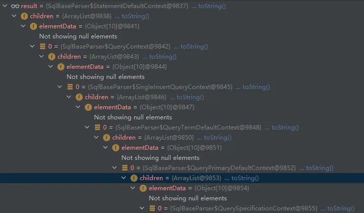 对应的规则,我们只需要输入对应的sql,就可以得到它的parse tree