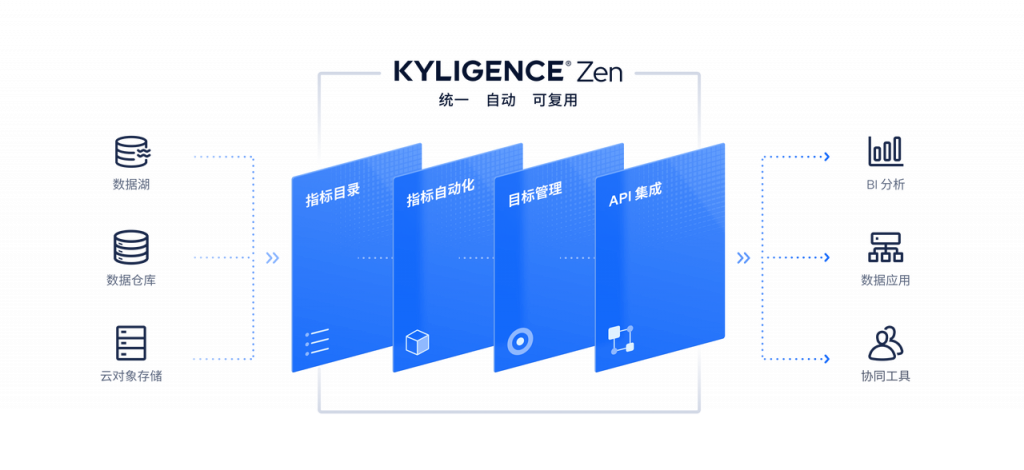 Kyligence Zen 为指标可信和目标协同提供了平台和管理支撑,能有效助力领先企业构建统一指标体系,实现管理的可观测性,驱动管理和业务目标的实现;同时也为企业赋能自身更高效的运营和管理机制、创造更广阔的商业价值奠定了坚实基础。
