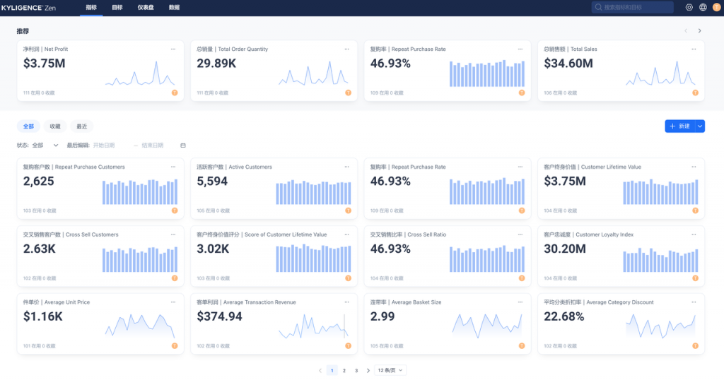 Kyligence Zen 通过指标目录能力,使得组织能够轻松定义和管理指标,形成统一的指标口径,同时增强数据的可信度。