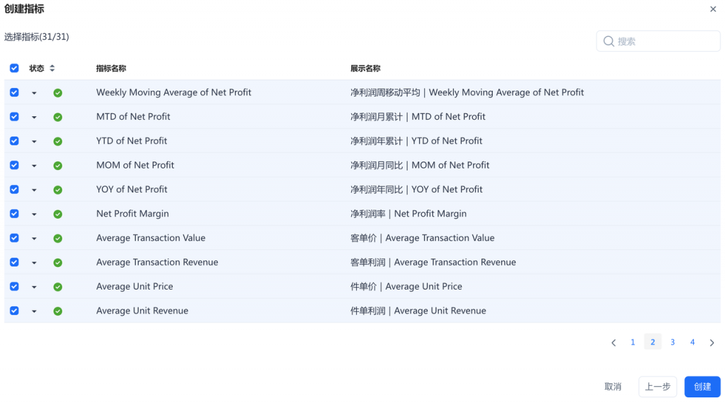 生成这样统一的指标库就和之前导入数据集一样简单快速!