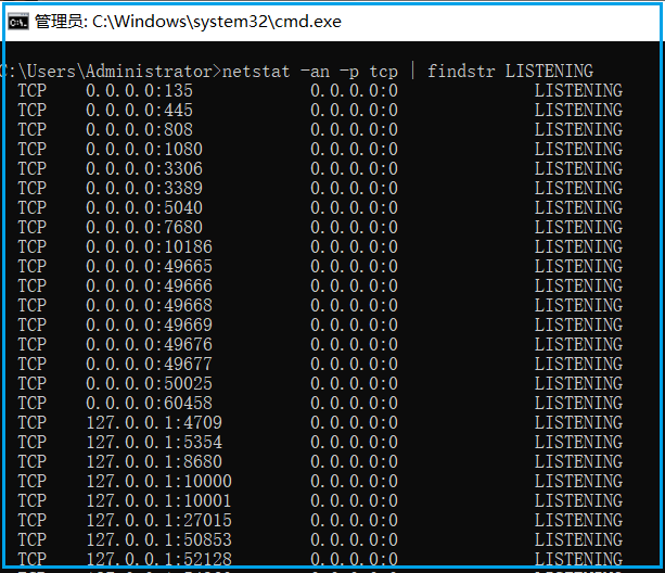 有时注册表中的端口号能查出来,但从外面连接不进来。此时首先要排查远程桌面的服务是否启动,可以通过查看本地监听端口来确认服务是否开始: