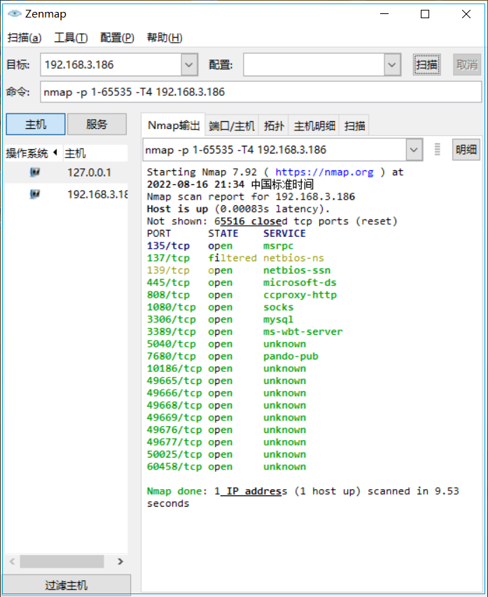 本地可以通过 netstat 查看本地开放的端口,从外部则只能通过端口扫描工具进行扫描。