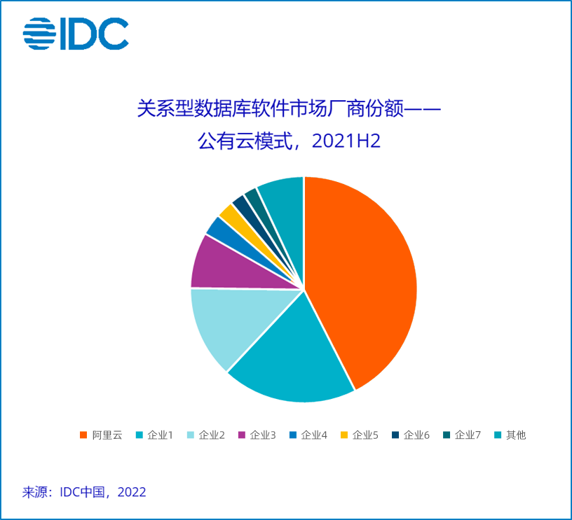 日前,市场研究机构IDC发布《2021年下半年中国关系型数据库软件市场跟踪报告》,阿里云市场份额(传统部署+公有云模式)位居第一,持续领跑国内关系型数据库市场。其中,在公有云市场上,阿里云已连续3年以绝对优势蝉联榜首。