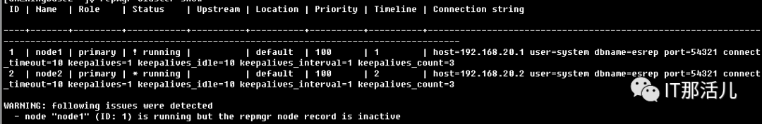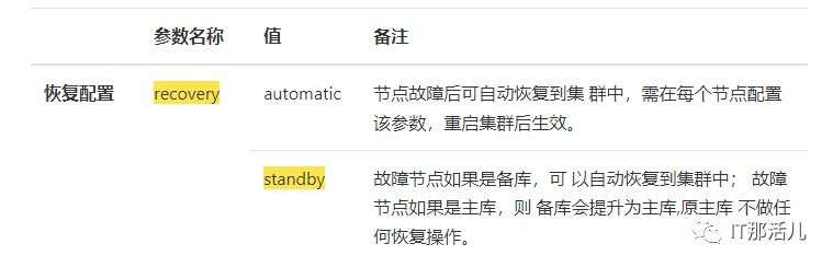 由于集群配置文件repmgr.conf默认配置recovery='standby',导致主库恢复后不做任何操作。
