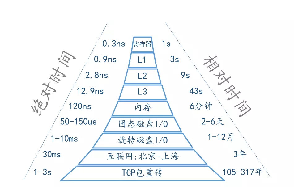 最后以一张图量化系统的各种延时时间(部分数据引用 Brendan Gregg)