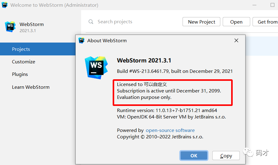 JetBrains 2021.2.2 及之前,我们可以通过无限重置试用期补丁来实现永久使用。
