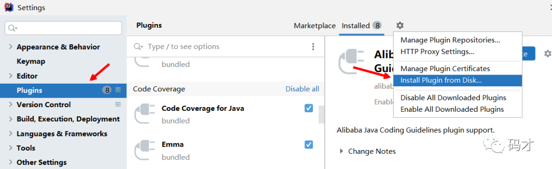 如果无法拖动安装,可以通过 settings 导入插件,具体操作是【File -> Settings -> Plugins -> Install Plugin From Disk】