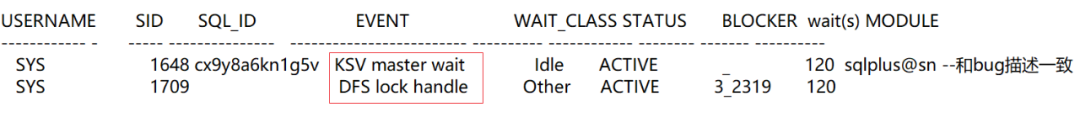 可以看到1648 session 正是我们online命令,等待KSV master wait事件和bug描述一致。