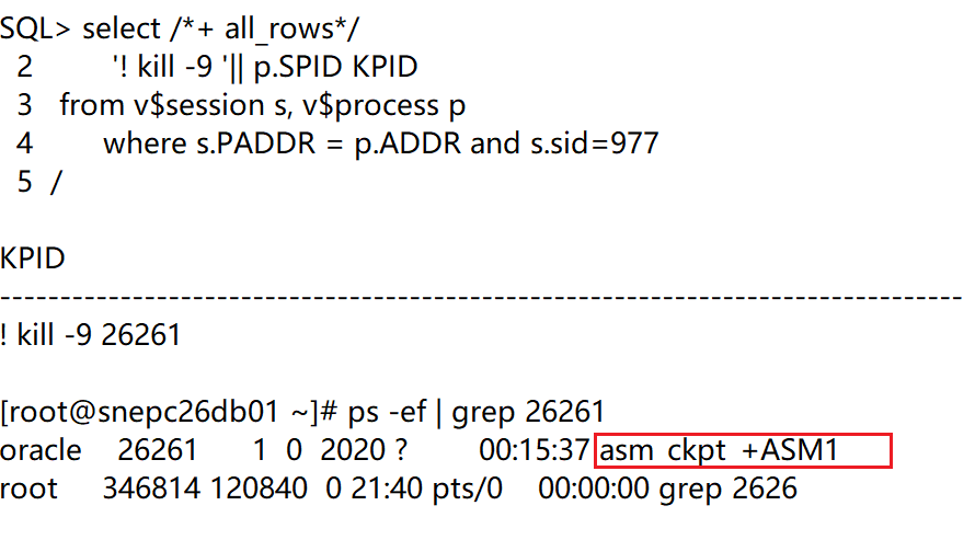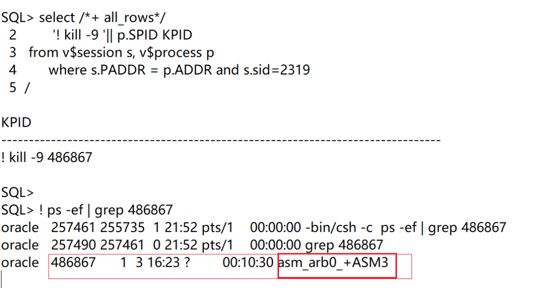 多节点oracle RAC11204环境下,分布式存储硬件检修后需要online磁盘,执行alter diskgroup ocr online disk OCR_0000,online命令hang,长时间没有反应,检查asm日志无报错信息。查询mos可能遭遇了bug ID:1232398.5,ASM在集群范围有锁。