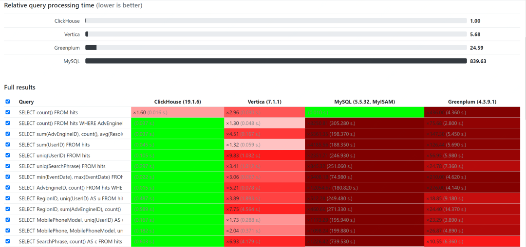 ClickHouse是Yandex公司开源的一款分析型数据库。Yandex是俄罗斯最大的提供搜索服务的公司,包含各类在线流量分析服务。ClickHouse就是在这样的背景下出现的。下面有一组数据,可以先来让你感受一下ClickHouse的强悍性能: