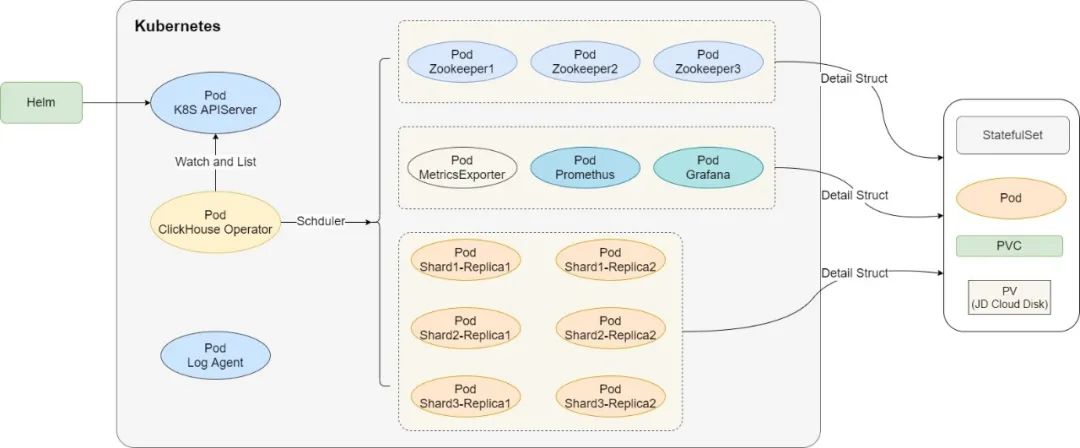 ClickHouse的集群架构天然就适合跑在K8s上,外加K8s已经成熟的StatefulSet,更加适合使用K8s进行调度,并且基于K8s进行架构部署也会更好地顺应多云思想。