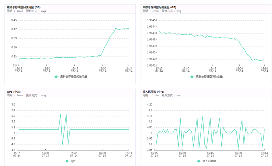 JCHDB不但提供了许多实例级的基础指标(如CPU使用率、内存使用率、磁盘使用及IO指标等),还提供了针对ClickHouse的许多相关指标(QPS、每秒插入记录数、积压job数、当前活跃连接数等)。