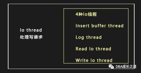 point1:InnoDB 的 IO thread包括四种:(insert buffer thread)、(log thread)、(read io thread)、(write io thread)