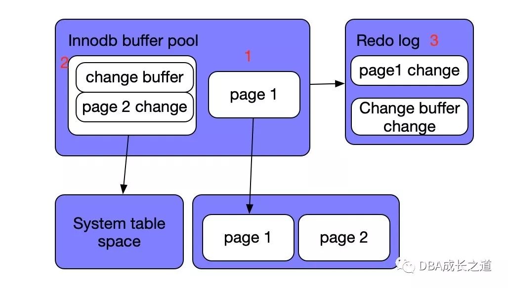从change buffer的执行过程中,我们可以看到,如果需要修改的数据页page 2不在内存中时,Innodb并不会去磁盘中读取,而是在change buffer中记录了page 2中的数据变更。