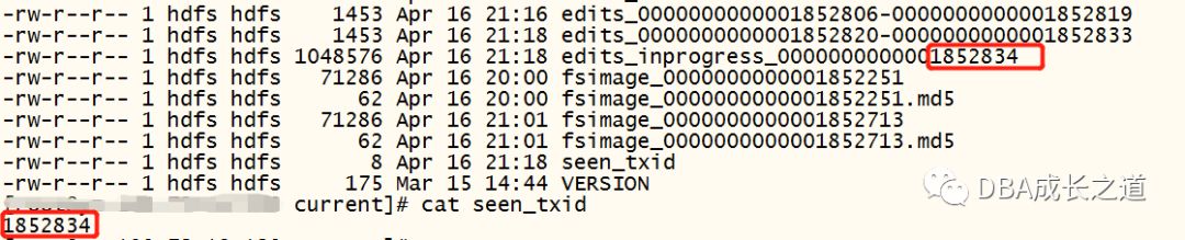 保存最近一次fsimage或者edits_inprogress的transaction Id,在NameNode重启的时候,会按照seen_txid的数字,依次遍历。这个文件的目的在于判断在Namenode启动过程中是否有丢失的edits,一旦出现丢失的情况,Namenode进程将不会完成启动,从而保护数据的一致性。