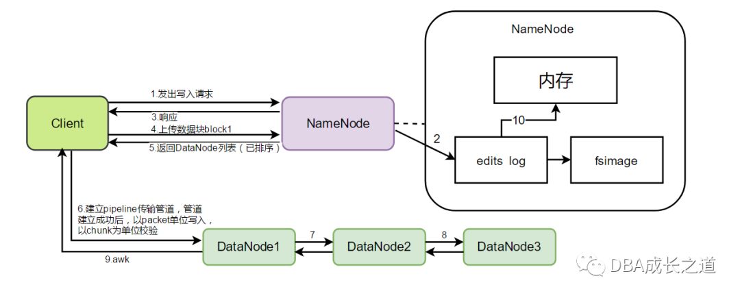 在回答这个问题之前,先来了解一下HDFS的数据写入过程: