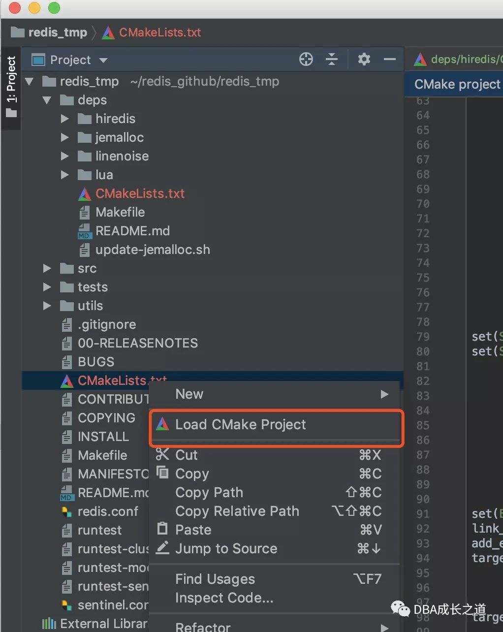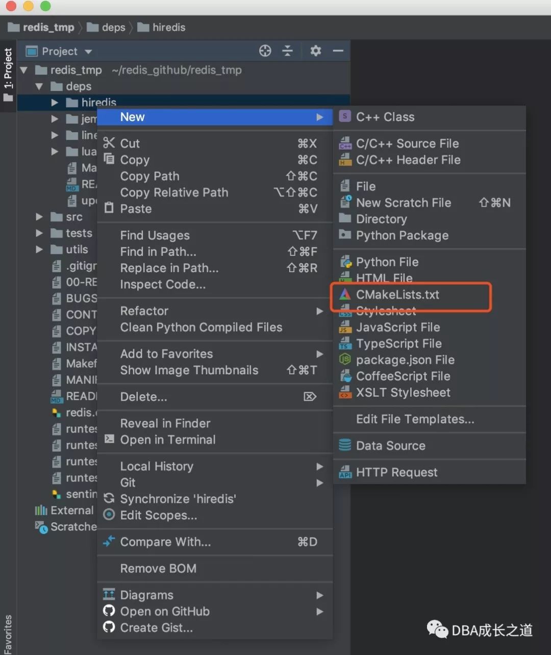 CLion使用CMake作为其编译系统,利用CMake的配置文件CMakeLists.txt可以很方便的创建编译器本身的代码环境。所以,用CLion打开下载的Redis源码目录后,需要添加相应的CMakeLists.txt文件。