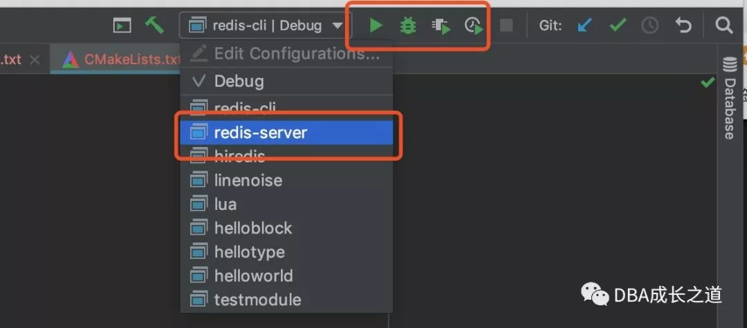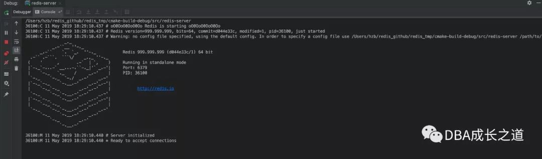 我们选择redis-server后,点击调试按钮开始进行调试操作。