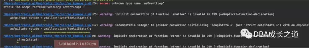 这个时候只需要点击进入ae_kqueue.c文件中,添加下面两个头文件: