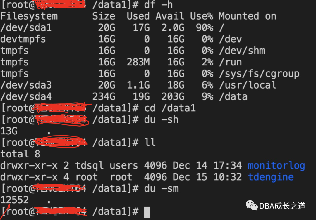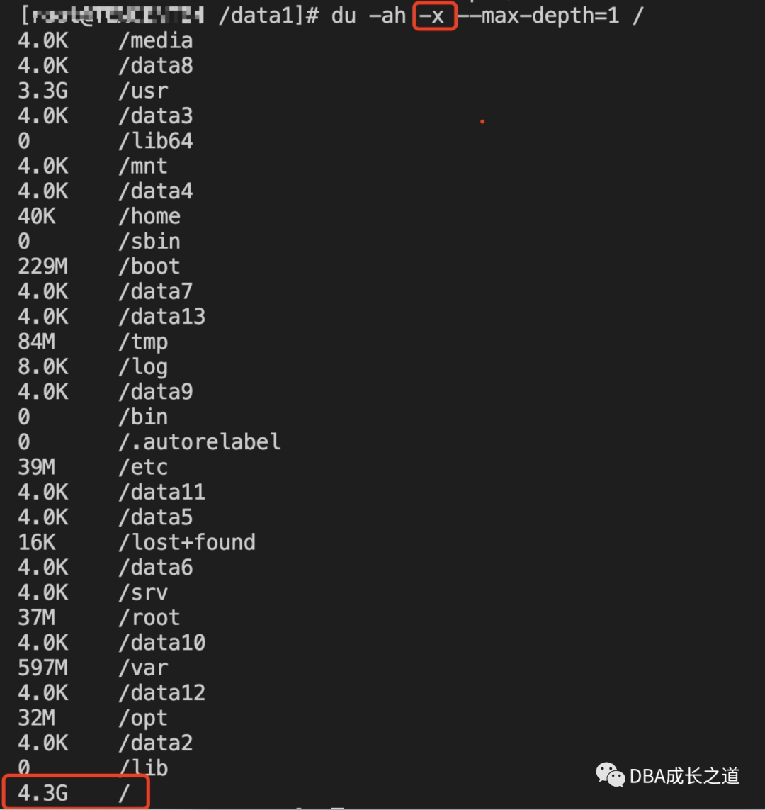 发现占用12G多空间的文件找到了,清理后重新mount磁盘到/data1目录,发现空间占用是预期的4.3G,空间问题得到解决。