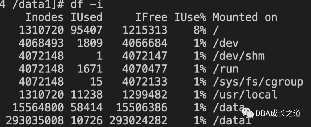 结果发现也无删除文件未释放空间,接下来检查是否inode已经用满导致,执行命令: