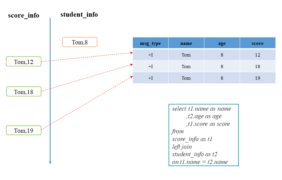 显然,连接操作需要定义左、右两张动态表,左表沿用上一篇的学生得分记录的score_info数据集: