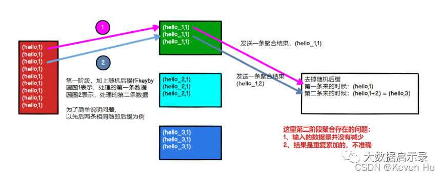 的情况下,简单的认为使用两阶段聚合,是不能解决问题的。因为这个时候 Flink 是来一条