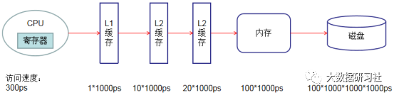 可以看出寄存器访问数据的速度,是内存的300倍,是磁盘的30000 万倍。