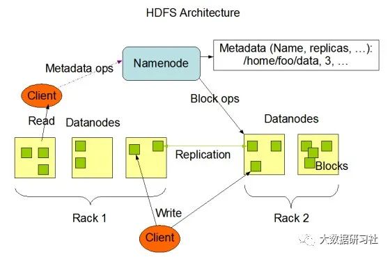 HDFS具有主/从架构。一个HDFS集群包含一个NameNode(一个主服务器),用于管理文件系统名称空间并管理客户端对文件的访问。此外,还有许多DataNode,通常是群集中的每个节点一个DataNode,用于数据存储。HDFS对外暴露文件系统名称空间并允许用户数据存储在文件中。在内部,文件被分成一个或多个块,这些块存储在一组DataNode中。NameNode执行文件系统命名空间操作,如打开,关闭和重命名文件和目录。它还确定块到DataNode的映射。DataNode负责提供来自文件系统客户端的读取和写入请求。DataNode还在NameNode的指令下执行块创建,删除,复制。