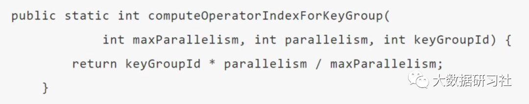 3.keyby之后的处理算子:建议最大并行度为此算子并行度的整数倍,这样可以使每个算子上的keyGroup是相同的,从而使得数据相对均匀shuffle到下游算子,如下图为shuffle策略