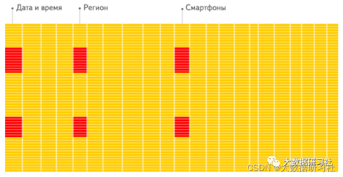 2. 按列分开存储,按数据包读取时因此更易于压缩。列中的数据具有相同特征也更易于压缩, 这样可以进⼀步减少I O量。