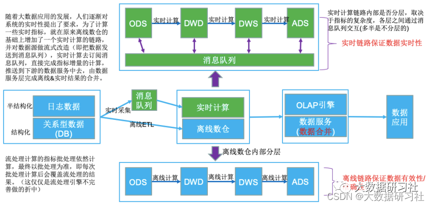 3>通俗来讲:离线和实时数据链路都存在,根据每个业务需求选择在合适的链路上来实现