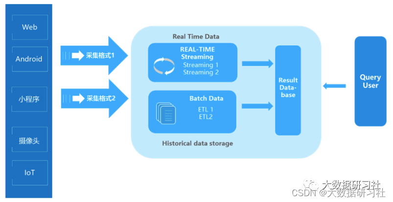 例如业务方会发现,次日看到的数据比昨晚看到的要少。原因在于:数据在被放入Result Database时,⾛了两条线的计算⽅式:⼀条线是ETL按照某个⼝径“跑”过来,得到更为准确的批量处理结果;另⼀条线是通过Streaming“跑”过来,依靠一些算法得出的实时性结果。当然它牺牲了部分的准确性。可见,这两个来⾃批量的和实时的数据结果是对不上的,因此⼤家觉得很困惑。