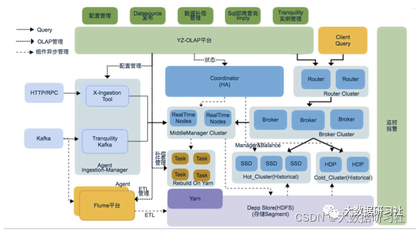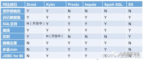 Kappa架构来构建数仓是妥妥的实时数仓,每个需求都⾃⼰开发流处理代码,⽐较繁琐,⼀个较好的办法是借助OLAP引擎,主流的引擎如下(个别的严格意义上来说不是OLAP引擎,但是具备相应功能):