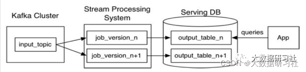 2. 当某个或某些指标有重新处理的需求时,按照新逻辑写⼀个新作业,然后从上游消息队列的最开始重新消费,把结果写到⼀个新的下游表中。