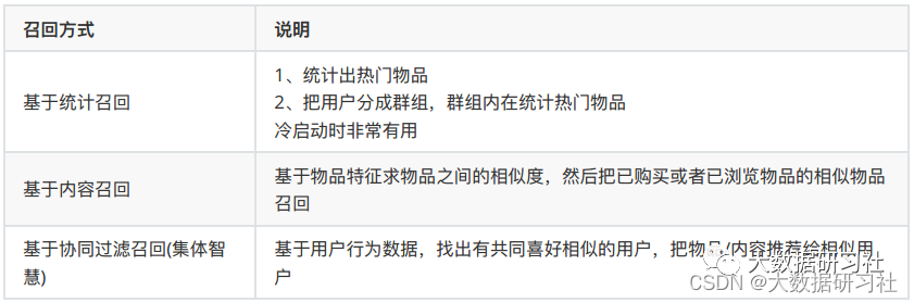 召回模块的意义在于从海量的物品中找出⽤户可能感兴趣的⼩部分物品,不⾄于推荐的数量太多。因为要在原始的海量物品上进⾏召回,所以召回的规则、算法或者说模型不能太复杂,否则计算量成指数倍增⻓根本不可能实现。