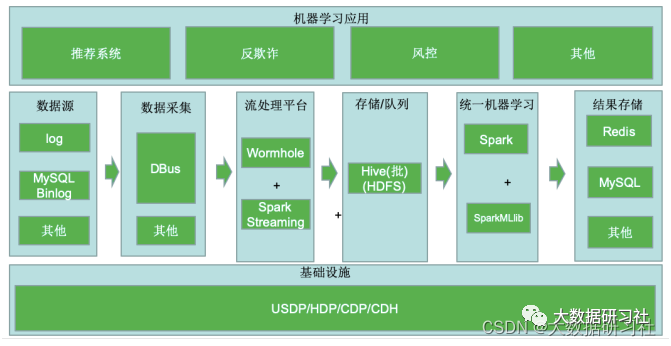 以往在⾯对⼤数据下的机器学习场景时,⼤家往往想到的是SparkMLlib,架构如下: