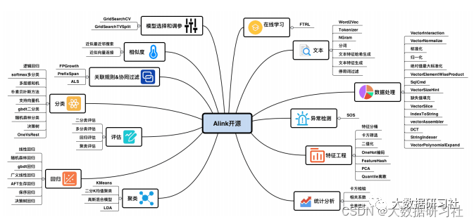 Alink提供了丰富的算法组件,是业界⾸个同时⽀持批/流算法的机器学习框架。