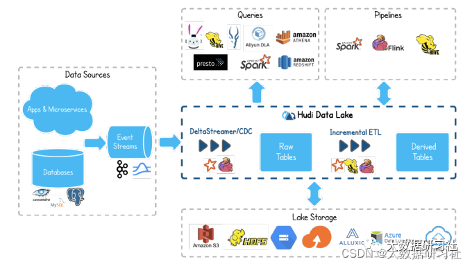 (2)结合数据湖:⽀持海量、复杂数据类型(⽂本、图像、视频、⾳频)